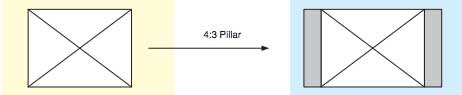you choose between the ratio of 4 : 3 or pillarbox 16:9 ( black bars left and right )